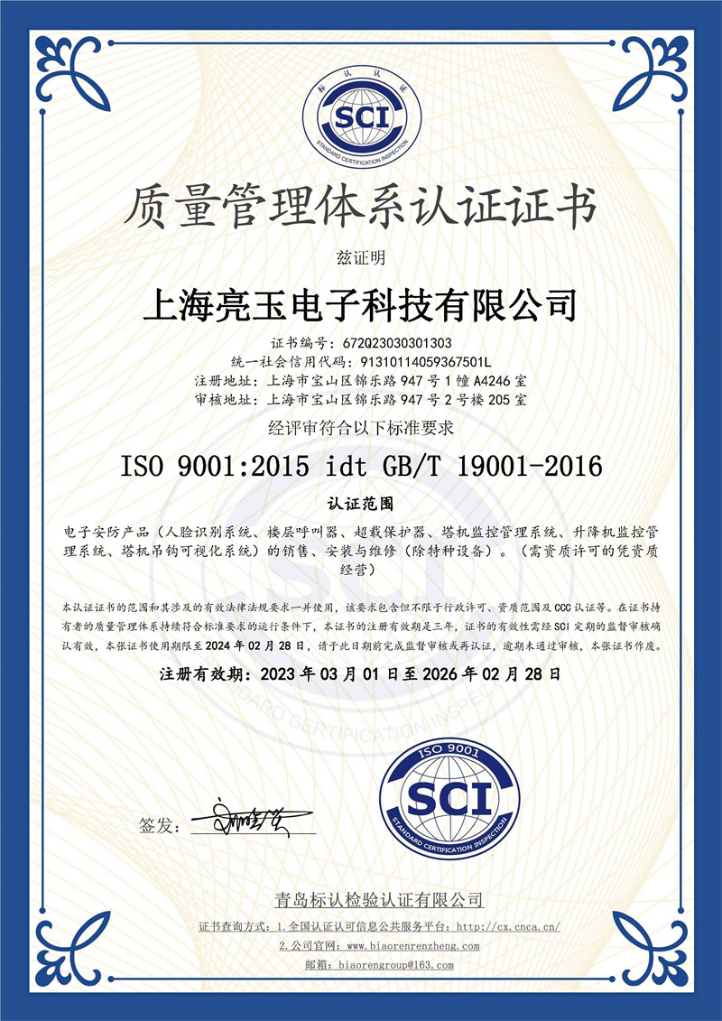 上海亮玉電子科技有限公司2012年成立于國(guó)際性大城市魔都上海,注冊(cè)資金500萬(wàn)元。公司專(zhuān)注于研發(fā)智能化電子產(chǎn)品,打造智慧化工地,為施工安全保駕護(hù)航!公司擁有優(yōu)秀的研發(fā)團(tuán)隊(duì),經(jīng)過(guò)多年研發(fā)生產(chǎn),現(xiàn)經(jīng)營(yíng)的產(chǎn)品有:塔機(jī)安全監(jiān)控管理系統(tǒng)、塔機(jī)吊鉤可視化系統(tǒng)、升降機(jī)安全監(jiān)控管理系統(tǒng)、人數(shù)識(shí)別控制系統(tǒng)、人臉指紋識(shí)別系統(tǒng)、人臉識(shí)別呼叫集成系統(tǒng)、樓層呼叫器、超載保護(hù)器等智能化電子產(chǎn)品等,并取得了多款產(chǎn)品的專(zhuān)利證書(shū);并于2022被上海市科學(xué)技術(shù)委員會(huì)評(píng)定為“高新技術(shù)企業(yè)”,而且公司還順利通過(guò)了ISO9001國(guó)際質(zhì)量管理體系認(rèn)證。上海亮玉公司以誠(chéng)信和實(shí)力獲得了“中國(guó)建筑”、“中鐵四局集團(tuán)”、“上海建工”等合作建筑公司的一致肯定與好評(píng),以及全國(guó)各地代理商的信賴(lài)!。